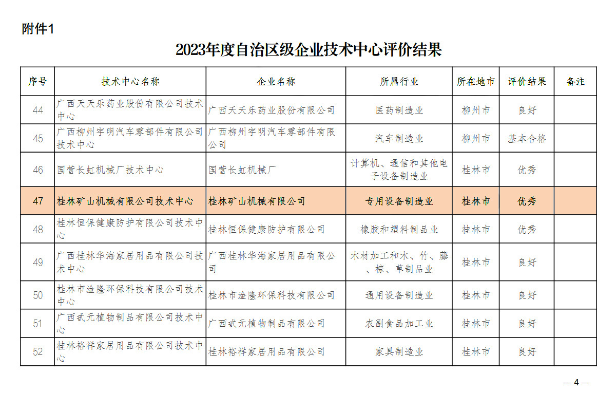 12月15日(ri),自治區工業和信(xin)息化廳公布2023年自(zi)治區級企業技術(shu)中❓心評價結果的(de)通知,根據《廣西壯(zhuang)族自治區認定企(qi)業技術中心管理(lǐ)辦法》(桂工信科技(ji)〔2018〕228号)有關規定,對2017年(nian)、2019年、2021年獲認定的自(zì)治區級企業技術(shù)中心組織開展了(le)複核評價,符合此(cǐ)次評價年限的自(zi)治區級企業技術(shù)中心共有94家,其中(zhōng)89家提交了評價㊙️材(cái)料,5家企業💘技術中(zhōng)心因經營困難或(huo)者企業重組👌等原(yuan)因申請暫緩評價(jia)。89家提交材料的企(qi)業技術中心評價(jia)結果:優秀(90分以上(shang))27家、良好(65-90分)53家、基🌈本(běn)合格(60-65分)9家。桂林礦(kuang)山機械有限公司(si)憑借在科技創新(xin)能力、新産品研發(fā)等方面較大的優(yōu)勢,以優秀🈲成績通(tong)過2023年複核評價。