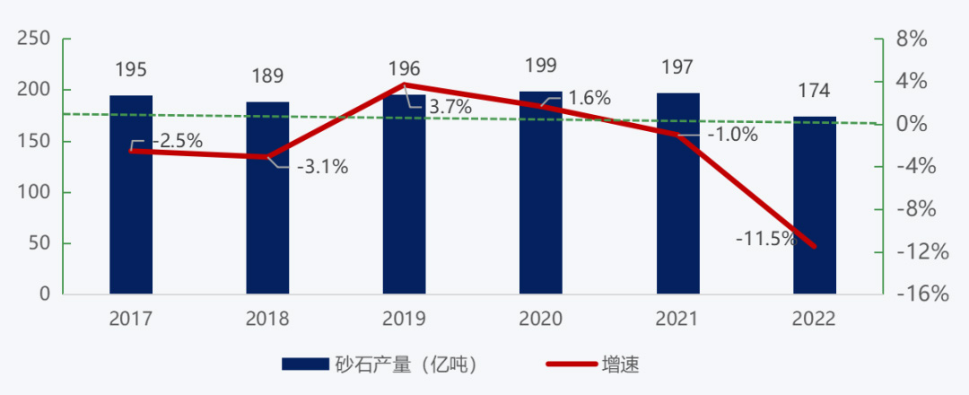 2017-2022年我國砂(sha)石産量變化情(qing)況