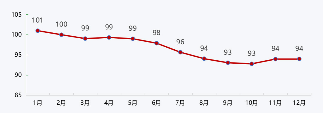 2025年12月(yue),碎石均價94元/噸(dun),12月同比下跌7.9%。