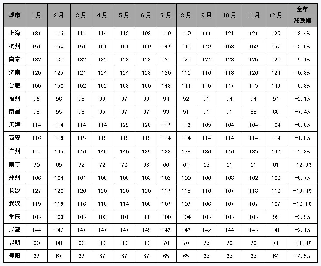 全(quan)國重點城市2022年(nian)砂石行情月度(dù)變化表(元/噸)