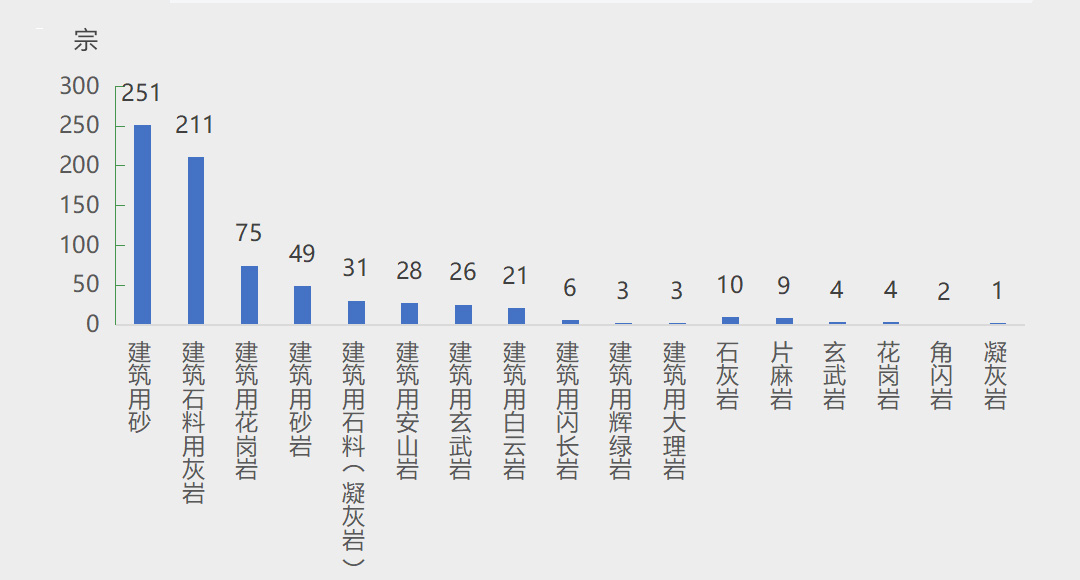 全(quán)國新設砂石礦(kuang)權中,有建築用(yòng)砂、建築石料用(yong)灰岩、建築用花(hua)🧑🏾🤝🧑🏼崗岩、建築用砂(shā)岩、建築用石料(liao)(凝灰岩)、建築用(yong)安山岩、建築用(yòng)玄武岩、建築用(yòng)白雲岩、石灰岩(yán)、片麻岩、建築🈲用(yòng)閃長岩、玄武岩(yan)、花崗岩、建築用(yong)輝綠岩、建築用(yong)大理岩、角閃岩(yan)、凝灰岩17種礦種(zhong)。其中建築用砂(sha)、建築石料用灰(huī)岩👅兩類礦種新(xīn)設數量最多🏃🏻,分(fèn)别爲251宗、211宗;建築(zhu)用花崗岩礦75宗(zong);建築用砂岩、建(jian)築用石料(凝🐪灰(hui)岩)、建築用安☔山(shan)岩、建築用玄武(wǔ)岩、建築用✉️白雲(yun)岩五類礦種新(xin)設數量在20~50宗;建(jiàn)☀️築用閃長岩、建(jiàn)築用輝綠岩、建(jian)築用🧑🏽🤝🧑🏻大理岩三(san)類礦種新設數(shu)量在10宗以内;另(ling)外,新設10宗石灰(hui)岩礦、9宗片麻岩(yan)礦、4宗玄🐕武岩礦(kuang)、4宗花🌐崗岩礦、2宗(zōng)角閃岩礦、1宗凝(ning)灰岩礦。