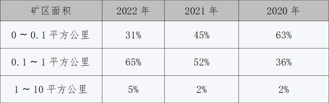 從新(xīn)設砂石礦權礦(kuang)區面積來看,砂(shā)石行業規模化(huà)✌️水平進一💃🏻步提(tí)升,礦區面積0.1~1平(píng)方公裏之間砂(sha)石礦權占新設(she)砂石👈礦權六成(cheng)以上,成爲新設(she)礦權的主流。新(xīn)設砂石礦權中(zhōng),礦區面積在0~0.1平(píng)方公裏之間的(de)有222宗,占比爲31%,占(zhan)比較2021年下降14個(ge)⭐百分點,新設小(xiao)規模砂石礦權(quán)數量持續減少(shǎo);礦區面積在0.1~1平(píng)方公裏之🈚間的(de)新設砂石礦權(quán)有464宗,占比逐年(nián)提升,2022年已經達(dá)到65%;礦區面積在(zai)1~10平方公裏之間(jian)的新設砂石礦(kuàng)權33宗,占比爲5%。