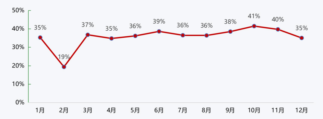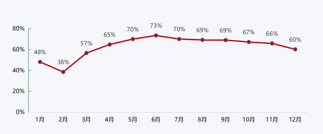 2022年砂(sha)石企業開機率(lü)和産能利用率(lǜ)走勢較爲一緻(zhi),均在年初、年尾(wei)出現回落,年中(zhōng)保持較高水平(píng)。一季度,受春節(jiē)假期、雨雪天氣(qi)等影響,開機率(lü)、産能利用率均(jun1)較低,2月更♈是分(fen)别降至38%、19%;二季度(dù)疫情逐漸緩解(jie),三季度工程旺(wàng)季到來,二、三季(jì)度開機率、産能(néng)利用率均保持(chi)較高水平,6月更(geng)是達到了年度(dù)最高水平,分别(bie)升至73%、39%;進入四季(ji)度,受到雨雪天(tian)氣到來以及疫(yì)情的反複,雙重(zhòng)因💋素的影響導(dao)緻開機率、産能(neng)利用率均出現(xian)回落,12月,分⚽别降(jiang)至60%、35%。